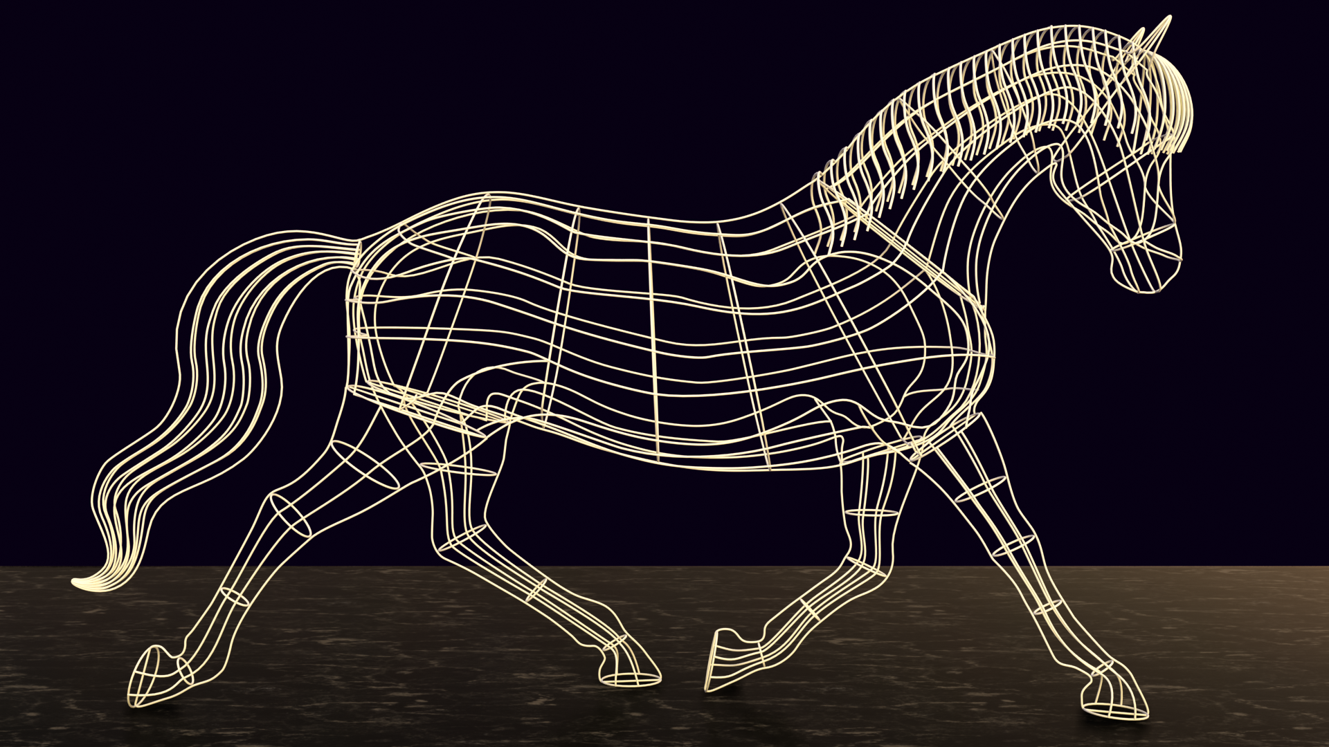 Декоративный каркас лошади из проволоки подходит для украшения улицы и интерьера. Изящества фигуре придает ее несимметричность. Каркас сваривается из стальной проволоки диаметром 6 мм.