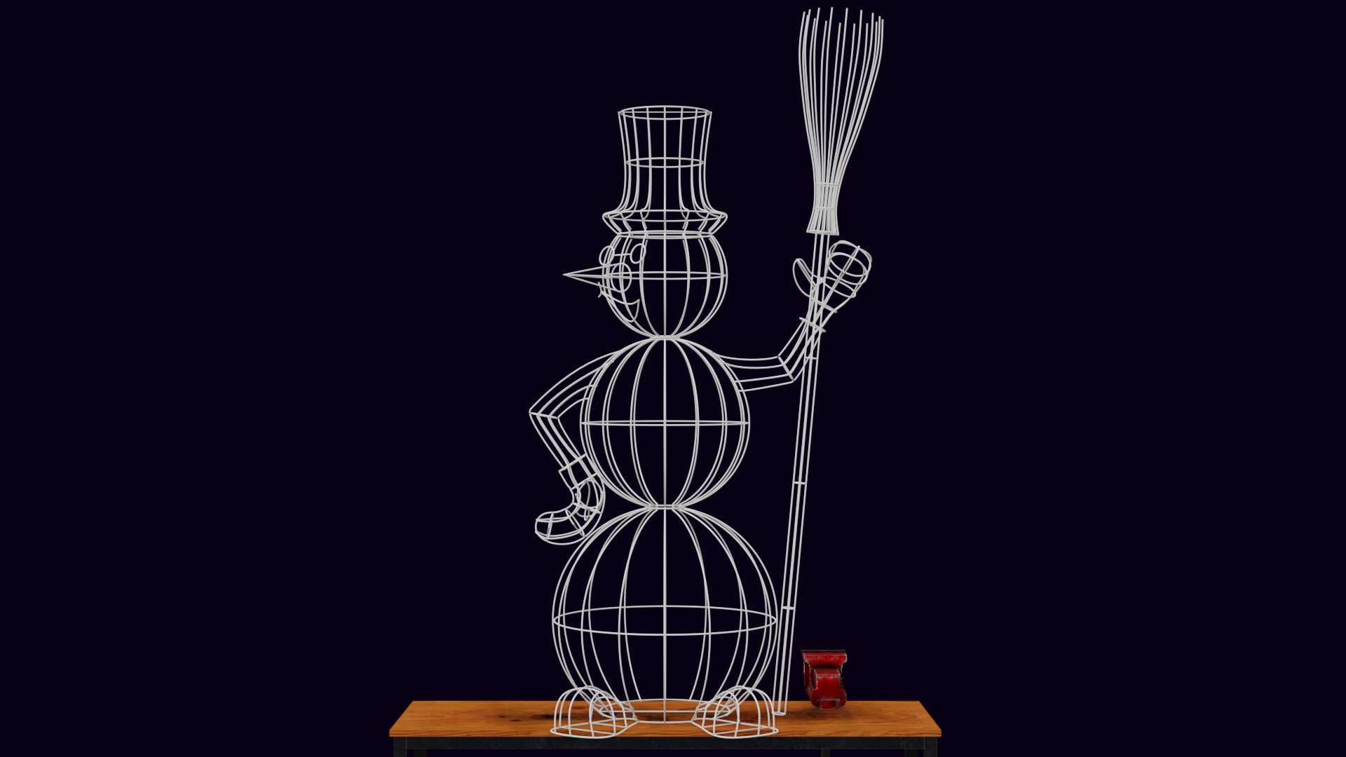 Декоративный каркас снеговика с метлой из проволоки подходит для украшения улицы и интерьера. Изящества фигуре придает ее несимметричность. Каркас сваривается из стальной проволоки диаметром 6 мм.