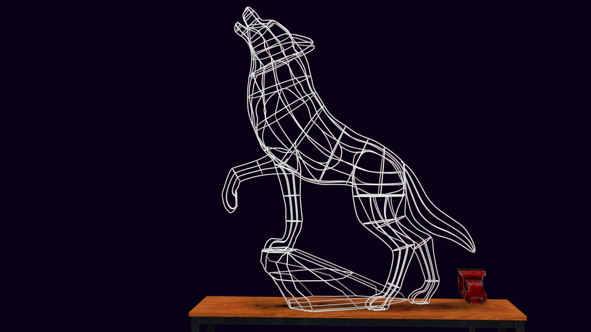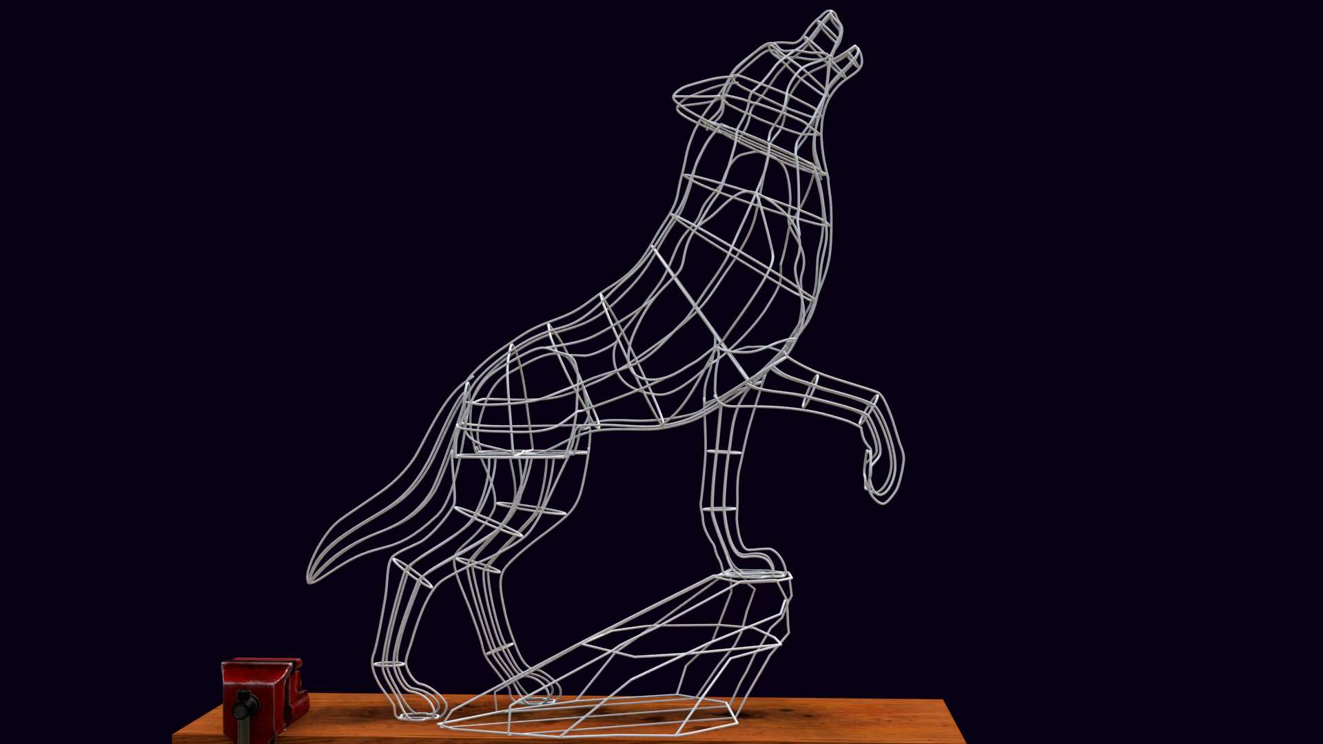 Декоративный каркас волка, воющего на луну из проволоки подходит для украшения улицы и интерьера. Каркас сваривается из стальной проволоки диаметром 5 мм.
